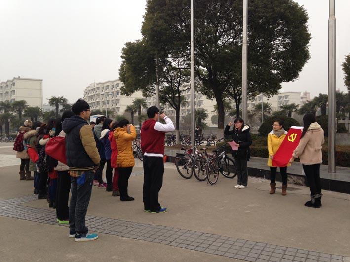 2014年2月24日早上7时30分,ac米兰官网中文网站影视艺术技术学院学生会与12级学生党支部共同策划了一次在图书馆前集体升旗仪式,及预备党员宣誓活动。参加本次活动的有影视艺术技术学院党组织员徐芬芳老师、6名预备党员和部分入党积极分子。这天天气阴冷,却丝毫没有阻挡大家的热情。级学生党支部成员率领积极分子,与学生会升旗同学一起,在图书馆前进行了庄重的升旗仪式。接着进行了庄重的入党宣誓仪式,每一位预备党员都右手握拳,12届党支部的杨鸽同学作为领誓人,一字一句地跟着说出坚定的誓言。