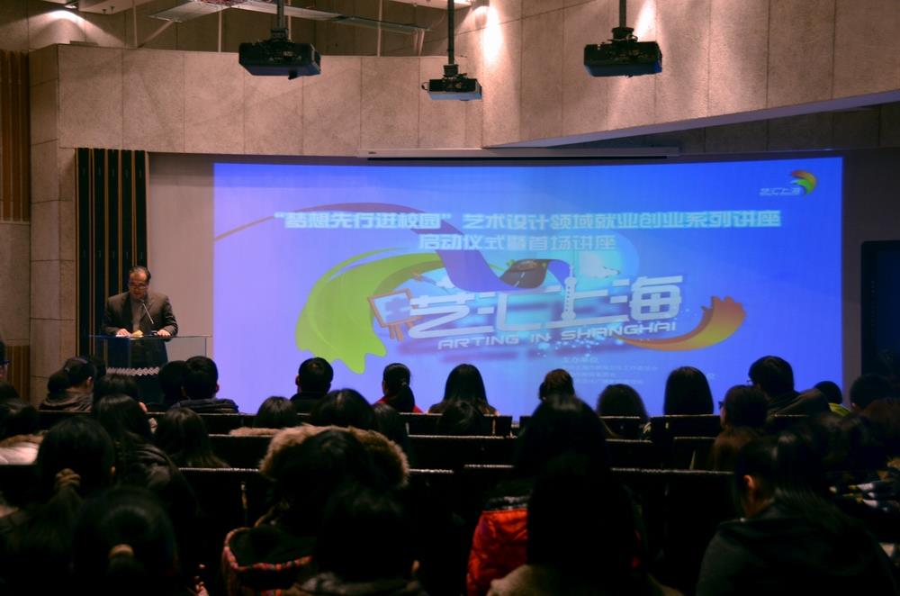 2014年1月7日晚6点,艺汇上海——首届上海校园新锐艺术设计人才培养与推介活动之“梦想先行进校园”艺术设计领域就业创业系列讲座启动仪式及讲座,在ac米兰官网中文网站美术学院隆重举行。随着系列讲座的启动,10场关于艺术设计专业学生就业、创业的高质量讲座将陆续进入上海各高校,为学子们开启更广阔的视野,搭建专业学习与就业创业相互沟通的平台。