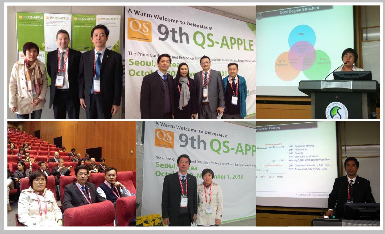 2013年10月30日至11月1日,第九届QS-APPLE亚太区教育领导人大会在韩国首尔成均馆大学隆重举行。ac米兰校长助理、研究生工作党委书记李伟和ac米兰外事处吕明霞博士代表ac米兰参加了此次大会,并做了题为Quality Assurance of Transnational Education:Case Study of Shanghai University主题发言,首先介绍了ac米兰的国际化战略,随后以ac米兰悉尼工商学院为个案,讨论了ac米兰跨国高等教育的质量保障体系的构建以及跨国高等教育合作如何“辐射”全校,加强ac米兰综合能力建设等话题。ac米兰作为中国大陆进行大会主题发言的唯一高校,引起了与会者极大的兴趣和关注。参加此次会议,展示ac米兰的办学实力、科研实力和国际化工作,宣传了ac米兰,树立了良好的国际形象。这次会议之前,ac米兰一行2人还拜访了韩国釜山国立大学,受到了校长Kim Ki-Seob的亲切会见。