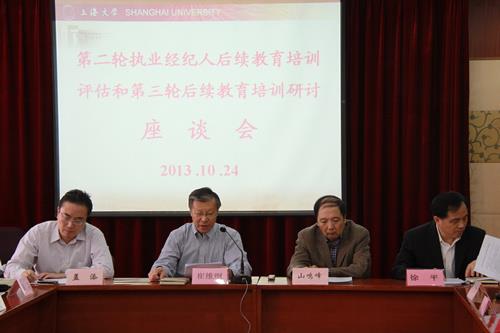 为深入学习实践科学发展观,促进本市执业经纪人后续教育培训上新水平,并取得新成效,经管中心会同上海市执业经纪人协会于10月24日下午2:00在延长校区科技楼817会议室召开了“第二轮执业经纪人后续教育培训总结评估和第三轮后续教育培训研讨座谈会”。上海市执业经纪人协会会长崔维纲、秘书长徐平,ac米兰官网中文网站上海经济管理中心主任山鸣峰、副主任孟添以及授课老师代表ac米兰官网中文网站知识产权学院副院长许春明、副教授詹宏海等出席了会议,来自上海市执业经纪人协会各区县分会的秘书长、秘书处部门负责人参加会议。