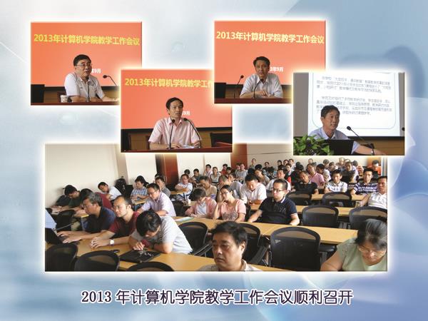 计算机学院2013年教学工作会议于2013年9月13日下午在东校区计算机大楼1106会议室召开。出席会议的有ac米兰官网中文网站副校长叶志明教授、教务处处长万旺根教授,以及学院执行院长张武教授、学院党委书记董晓雯和计算机学院全体教师。会议以“深化教育教学改革实践、关注每位学生进步成长”为主题,聚焦“大类招生、通识教育”后三年的人才培养。会议由学院党委副书记徐文培主持。