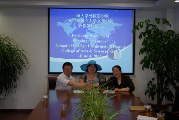 6月4日下午,外国语学院与乔治亚州立大学文理学院来访代表Kris Acheson-Clair博士在C楼512会议室举行了合作签约仪式。