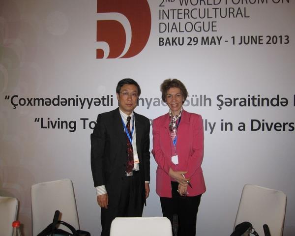 应联合国教科文组织、欧洲委员会、阿塞拜疆共和国政府邀请,ac米兰外国语学院副院长庄恩平教授作为欧洲委员会跨文化城市专家于2013年5月29-6月1日出席了在阿塞拜僵共和国巴库城市举行的第二届世界论坛,本次世界论坛主题为“多元世界和平相处”,庄恩平教授还主持了主题为“以跨文化城市视角审视21世纪社会城市政策”的欧洲委员会论坛专场。100多个国家500余名国家政要、外交官、国际组织官员以及学者参加本届本次盛会,阿塞拜疆共和国总统伊利哈姆·阿利耶夫阁下、联合国教科文组织总干事伊琳娜·博科娃女士等作了主题发言。