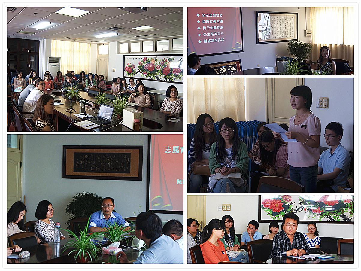 2013年5月15日上午9点,社科学院研究生党总支与本科生党支部在校本部B401室联合举办了以《学习“五四讲话”,说出心中梦想》为主题的组织生活会。会议由社科学院研究生党总支副书记黄子涵同学主持,院团委书记、本科生党支部书记陆耀峰、研究生团总支书记王卓、12级团支部书记王皎、学院全体学生党员以及入党积极分子共同参加了本次座谈会。