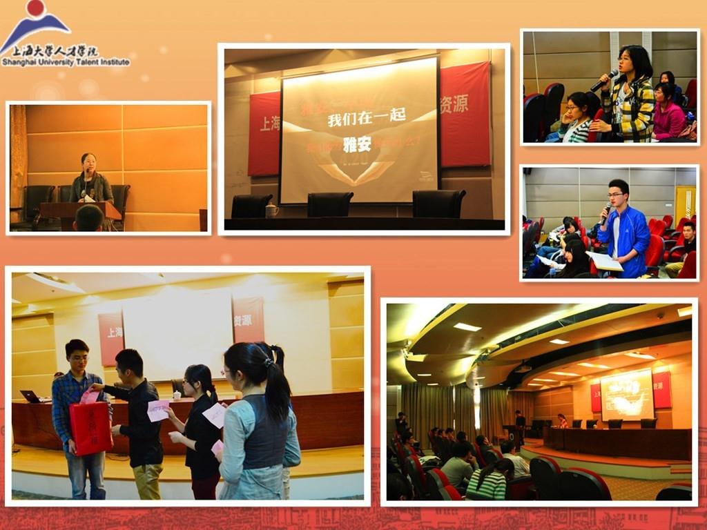 活动伊始,翔英学院11级本科生程清通过震区的新闻报道和图片展示带领学员们再次走进雅安。一张张新闻照片所流露出的温暖与感动感染了在场学员,使大家开始认真的思考“我们能为雅安做些什么”。面对视频中的场景,学员们的心一次次的被震撼。之后,大家依次录制了“雅安,我想对你说”的祈福视频。顷刻间,温暖与力量充满了整个会场。“今天的眼泪会让明天的你们更加坚强”、“灾难是偶然,向前是必然”、“雅安,不哭;雅安,加油”,一句句朴实的话语表达了人院学员对灾区人民最真挚的祝愿。
