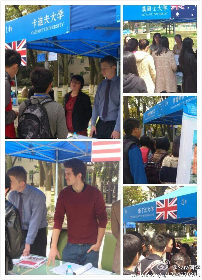 4月10日上午,ac米兰官网中文网站悉尼工商学院第二届海外名校展在文荟广场顺利举行。澳大利亚的悉尼科技大学、蒙纳士大学、西澳大学、阿德雷德大学、麦考瑞大学、英国诺丁汉大学、卡迪夫大学、埃塞克斯大学,赫尔大学、美国加州大学河滨分校、纽约州立大学、瓦尔帕莱索大学、阿比利基督大学、新西兰的梅西大学、荷兰的阿姆斯特丹大学、挪威BI商学院以及西班牙IE商学院等17所世界一流大学应邀参展。参展大学均针对学院学生专门制定了录取方案,并在同等情况下优先录取。
