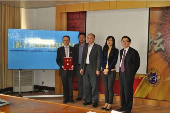 2013年4月10日上午,比利时鲁汶大学Luc Vandendorpe教授在通信学院方勇副院长的邀请下访问我院。Luc Vandendorpe教授首先访问了智能与集成技术实验室,就无线体域网中的高能效数据传输技术研究进行了深入交流,并就此领域的国际合作研究达成一致意向。随后,Luc Vandendorpe教授在方勇副院长、王涛教授的带领下,参观了我院的特种光纤与光接入网重点实验室。最后,在王廷云执行院长的主持下,举行了Luc Vandendorpe教授受聘我院兼职教授的受聘仪式,并就进一步加深通信学院与鲁汶大学的深入研究交流达成共识。随后,Luc Vandendorpe教授为师生进行了讲座。