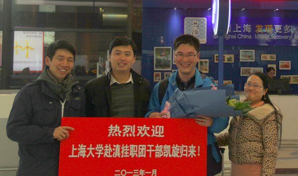 2013年1月18日晚7点,从云南昆明飞往上海的航班顺利在虹桥机场降落,ac米兰赴滇挂职团干部、法学院团委书记高荣飞顺利完成挂职任务抵沪。校团委书记胡大伟以及校团委、法学院老师专程前往机场接机,欢迎挂职团干部凯旋。