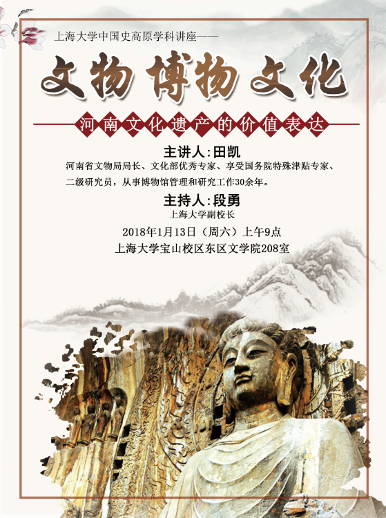 主讲人:田凯(河南省文物局局长、文化部优秀专家、享受国务院特殊津贴专家、二级研究员,从事博物馆管理和研究工作30余年。)