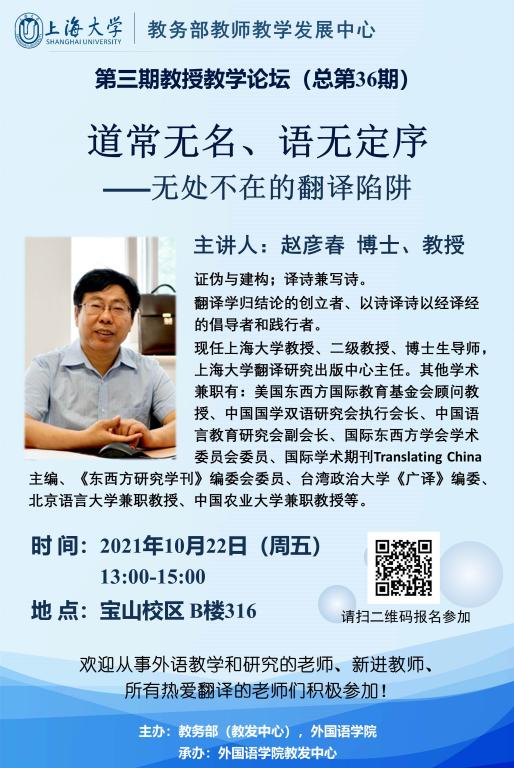 ac米兰官网中文网站教务部教师教学发展中心第三期教授教学论坛(总第36期)道常无名、语无定序——无处不在的翻译陷阱